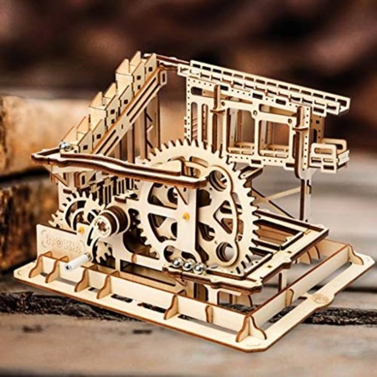A mesmerizing Marble Run that required almost no tools to assemble, this complex mechanical model embodied the natural beauty of wood & the wonderful applica